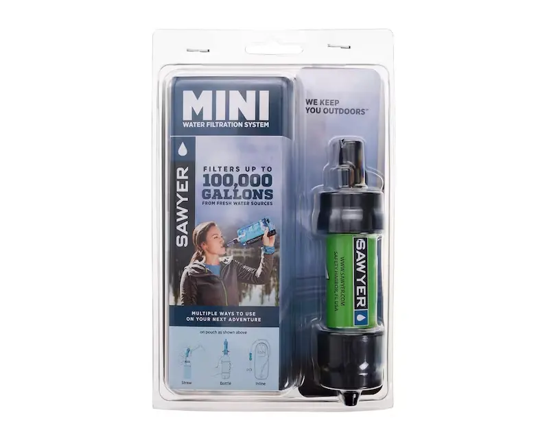 Le Sawyer Mini – Version Verte est un filtre à eau ultra‑léger et extrêmement fiable, capable de traiter jusqu’à 380 000 litres grâce à sa membrane de fibres creuses à 0,1 micron absolu. Il élimine 99,99999 % des bactéries (E. coli, salmonelles, choléra) et protozoaires, sans altérer le goût de l’eau.